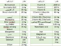 ترکیبات: (برای مشاهده ی بهتر اطلاعات جدول روی آن کلیک کنید).