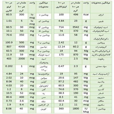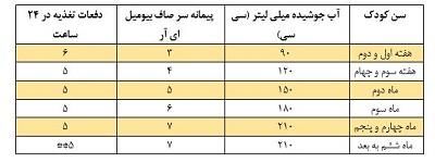 جدول تغذیه: (برای مشاهده بهتر اطلاعات جدول بر روی آن کلیک کنید).