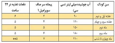 جدول تغذیه: (برای مشاهده بهتر اطلاعات جدول بر روی آن کلیک کنید).